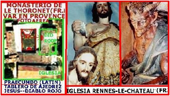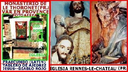Las inscripciones de todo tipo del misterioso enigma de Rennes-le-Château (Aude), anticipo que en realidad conducen a lugares concretos de la geografía del departamento del Var (Provenza - Fr.). Hoy puedo asegurar que me da más risa que pena la persona que hace unos años "presumió" de ser su autor y haberlos "inventado". El misterio es mucho más elaborado y bonito de lo que nadie se podía imaginar. El "plano del tesoro" (la pista principal) está gravado en una lápida, y la segunda pista es una "Estrella de David" aplicada sobre una determinada geografía, lo cual conduce a un monasterio del sur de Francia llamado "Le Thoronet". Los antiguos romanos después de ver saqueada la capital imperial por los bárbaros, creyeron que los manuscritos que se llevaron del Templo de Jerusalén, e incluso las Tablas de la Ley (o "del Testimonio"), estarían en algún lugar de la actual Provenza (primera provincia de Roma).